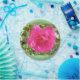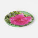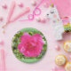 Eine Grünpapiertafel mit einem Bild einer rosa Rose darauf.