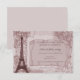 Mit einer rosa Pariser Brautdusche laden Sie ein, sich ganz nach Ihren Wünschen zu entspannen. Im Eiffelturm können Sie die Informationen Ihres Brautparty mit Damast- und Postschmuckstücken und Briefmarke im Detail nachlesen. Mit diesem Design sind auch weitere Hochzeitswaren erhältlich. Brauchen Sie Hilfe bei der Anpassung? Bitte kontaktieren Sie mich, und ich werde den Wortlaut und die Details ausarbeiten, um dieses Design zu Ihrer Zufriedenheit zu gestalten.