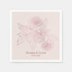 Helles Flüstern pink mit tiefer liegender Rose und zeichnend botanischer Linie. Waldfloralen verbinden sich in Zentralbukett. Klassische Typografie für Name und Datum.