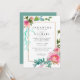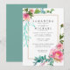 Eine schöne Blumenvorlage für die DIY Bride. Elegant und elegant mit einem dünnen goldenen Rahmen, der den Text umgibt. Große rosa Pfannenbäume mit Himbeerrosa Akzenten werden in den oberen und unteren rechten Ecken des Goldrahmens platziert. Eine Vielfalt an Grünpflanzen, von tiefem Olivenöl bis hin zu Aqua, schaffen ein modernes angesagtes Ambiente. Die Rückseite der Hochzeitseinladung ist aquamarin blau. Sie können den Vorlagentext einfach durch Ihre eigenen Hochzeitsdetails ersetzen. Außerdem ist es einfach, den Schriftart, die Größe und die Farbe des Textes zu ändern. Sie können auch die Farbe auf der Rückseite der Einladung ändern.