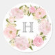 Rosa Peony Wreath Monogram Runder Aufkleber