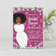 Diese elegante rosa Brautdusche mit Perlenrahmen auf einem wunderschönen Glitzer mit rosa Imitaten und einer afroamerikanischen Frau in weißem Kleid. Diese Einladung vermittelt einen ersten Eindruck von Stil und Eleganz für Ihre große Veranstaltung.