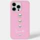 Drehen Sie sich mit diesem zauberhaften rosa iPhone-Gehäuse, das eine vertikale Reihe schimmernder Perlenakzente und Ihren personalisierten Namen in elegantem Skript enthält. Dieses Gehäuse verbindet den femininen Stil mit einem eleganten, modernen Rand und bietet sowohl Charme als auch Schutz für Ihr Handy. Perfekt als Geschenk für Teenager, Brautmädchen oder alle, die stilvolle und einzigartige technische Accessoires Lieben.