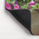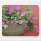 Rosa Petunien werden über einem dekorativen Pflanzer gegen eine rote Wand verschüttet, um den Entwurf für dieses helle mousepad zu schaffen.