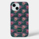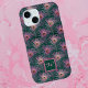 Rosa PfauenFedern und Monogramm auf Grün Case-Mate iPhone Hülle