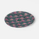 Rosa PfauenFedern und Monogramm auf Grün Pappteller
