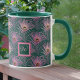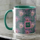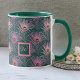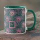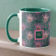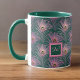 Rosa PfauenFedern und Monogramm auf Grün Tasse