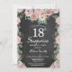 Rosa mit Blumenpfingstrosen überraschen 18. Geburtstags-Einladung für Frauen. Watercolor-BlumenBlume. Elegante rosa Rosen-und Pfingstrosen-Blumen. Erwachsener Geburtstag. Tafel-Hintergrund. Schwarzweiss. 13. 15. 16. 18. 20. 21. 30. 40. 50. 60. 70. 80. 90. 100., irgendein Alter. Für weitere Kundenbezogenheit klicken Sie bitte "besonders anfertigen es" Knopf und benutzen unser Entwurfswerkzeug, um diese Schablone zu ändern.