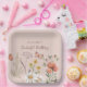 Dainty Wildblume Design für besondere Geburtstage. Niedliche Boho Blumenplatte für Geburtstagsparty mit femininen Wildblumen in Aquarellfarbe macht das Party zum perfekten Geschirr für einjährige Mädchen. Pastellfarben und Schmetterlingsfarben sind in Korallen, Rosa, Beige und Salbei-Grün gehalten.