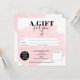 Moderne abstrakte pastellfarbene Rosa Wasserfarbe Pinselstrich einfache quadratische Geschenkgutschein, fügen Sie Ihr Logo, mit einer Rose goldenen Herz. Perfekter Geburtstag- oder Weihnachtsgutschein.