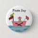 Eine tiefblaue See mit einem rosa Piratenschiff und der weiblichen Kapitän mit ihrem treuen grünen Paprika.