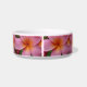 Diese kundenspezifische Haustierschüssel der Keramik hat Blüten eines rosa Plumeria, die wohlriechende hawaiische Blume, die häufig in Leu gefunden wird. Sie wiederholt fast vollständig um den Teller.
