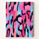 Kühne digitale Kunst in Rosa, Blau und Schwarz.