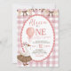 Pink Quirky Hand gezeichnet ein Albernes Gänse Geburtstag, Brown Coquette Bow Geburtstag Einladung, bearbeitbare Preppy Pink Ballon Erster Geburtstag