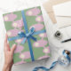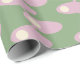 Dieses Verpackungspapier hat ein modernes Design von rosa Ovalen Mitte des Jahrhunderts verbunden durch rosa Linien mit cremefarbenen Kreisen alle auf einem Feld von hellgrün. Woll verschiedene Farben? Nachricht.