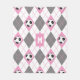 Dieses niedliche fußballbezogene Fleecedeckenmuster weist eine rosa, graue und weiße Raute auf, mit rosa "Nähten", die sich diagonal über die Diamantformen erstrecken, und schwarz-weiße Fußbälle, die über den rosa Diamantformen liegen - mit dem Monogramm des Athleten abgestimmt - von katz_d_zynes