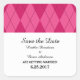 Klassische und elegante Raute Save the Date Sticker mit einem einfachen rosa Raute Muster Hintergrund. Einfach an Ihre Hochzeitsdetails anpassen. Klicken Sie für weitere Anpassungsoptionen auf die Schaltfläche Anpassen.
