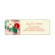 "Joy Liebe Peace" Weihnachtsgrüße auf einem hübschen, rosa, rot und grün blumengeschmückten Ferienhaus. Es handelt sich um ein Retro-Design aus den 1950er Jahren. Auch feine weiße Blume sowie whimsikale Bausteine und Ornamente sind Teil des Bildes. Auch Smaragdgrüne Blätter. Sie können den gesamten roten Text bearbeiten. Stellen Sie sicher, dass Sie die Namen und die Adresse der Personen ändern, die Sie auf diesen hübschen Rücksendeadressen-Aufklebern gewollt haben.