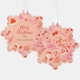 Ein niedliches Retro-Weihnachtsmuster mit Strümpfen, Weihnachtsmannmützen, Bausteinen und Heiligen in Rosa und Rot. Diese Schneeflockkarte kann als Geschenkkarte für Ihre Weihnachtsgeschenke verwendet werden. Personalisieren Sie es mit Ihren Namen(en) und fügen Sie es zu Ihren Geschenken.