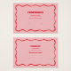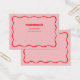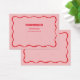 Ohrring-Display-Karte mit rotem Squiggelform auf einem rosa Hintergrund. Vorlagenlöcher können angepasst oder gelöscht werden, sowie alle Ihre Firmeninformationen. Fügen Sie Ihre Social Media oder Webseite ganz unten hinzu.
