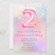Rosa Regenbogen 2. Geburtstag Einladung Girly Pink Glitzer 1. Geburtstag Party Einladung für ein 2-jähriges Mädchen mit modernen Drehbüchern und lustigen Folienballons.