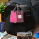 Personalisieren Sie Ihr Gepäck mit diesem farbenfrohen, rosa und schwarzen Regenbogen Design Gepäckanhänger "individuell mit Ihrem eigenen Namen und initiale auf der Vorderseite und Ihre Adresse Details auf der Rückseite. Matching-Elemente verfügbar. Originale Kunst von Künstlern eigene Illustrationen. Bitte nutzen Sie den unten stehenden Button für die Nachricht, um weitere Anpassungen und spezielle Anfragen zu erhalten. © Zoe Chapman Design