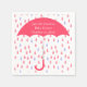 Rosa gearbeitete Babydusche Papierservietten, niedliche Grafik große rosa Regentropfen, die um einen korallenrosa Schirm fallen. Personalisieren Sie den weißen Text für Ihre Baby Dusche Veranstaltung. Die Babydusche wird koordiniert.