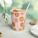Niedliche "zwei groovy" Papiertassen für eine Retro-Blumenfeier. Dieses Design zeichnet sich durch eine skurrile Wildblumen aus, die in einer böhmischen Farbpalette aus Braun und Terrakotta, Beige, Pink und Gelb gehalten ist. Ideal für Retro- und Boho-Party-Themen im Frühling und Sommer.