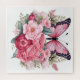 Rosa Retro Wasserfarbenschmetterling und Blume Puzzle