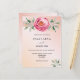 Eine Rose Gold und rot rosa Farbverlauf Hintergrund. Große, rosa Rose, grüne Blätter, Blattwerk mit kleinen goldenen Blume. Personalisieren und fügen Sie Ihre Namen und Hochzeitsdetails. Schwarze Buchstaben. Zurück: Rose Gold, Rosa Rosa Hintergrund.