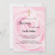 Ein nahes Aufsetzen einer wasserfarbenen, weichen Rosa Rose, Blume. Personalisieren Sie den Namen der Mama-to-be- und Party-Details und fügen Sie diese hinzu.