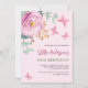 Rosa Rosa Blütenschmetterling Grüner Geburtstag Einladung