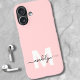 Personalisiert Blush Pink Initial Monogram Phone Case. Fügen Sie Ihrem Handy eine Touch von Eleganz und Weiblichkeit mit diesem stilvollen personalisierten Gehäuse hinzu. Dieses Design mit einem weichen, rosa Hintergrund, einem knusprigen weißen Anfangsbuchstaben und einem schwarzen Skriptnamen verleiht Ihrem Alltagszubehör einen luxuriösen, modernen Look. Ideal für Schwestern, Studierende oder Fachleute, ist dieser Handy-Fall ein durchdachtes Geschenk für Mütter, Freunde oder alle, die schicke und personalisierte Gegenstände Lieben. Ideal für Geburtstage, Ferien oder besondere Anlässe, ist es eine schöne Kombination aus Eleganz und Praxisnähe, die den Stil Ihres Telefons erhöht.