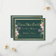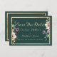 Elegantes Waldgrün, Gold und rosa Blütenhochzeit Save the Date Einladung. Diese botanische, rosa blumengeschmückte Hochzeitssuite-Party Einladung ist perfekt für jedes elegante und raffinierte Glamenmädchen. Dieses Design eignet sich ideal für ein trendiges und stilvolles Party. Passen Sie dieses Design mit Ihren eigenen Nachrichten und personalisierten Informationen an. Alle Designs sind gedruckt.