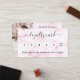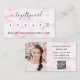 Rosa Rosa Marmor als Hintergrund, schwarzer Text vorne: Ermäßigung hinzufügen. Zurück: Personalisieren Sie Ihr Foto, Ihren Namen, Ihren Titel, Ihre Telefonnummer, Ihre E-Mail, Ihre Website-Adresse, Ihren qr-Code auf Ihrer Website. Lila Buchstaben. Ohne Glitzer auf der Rückseite.