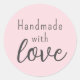 Rosa Rosa mit Liebe handgefertigt Runder Aufkleber