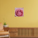 Hochwertige Grafik einer rosa Rose mit einer engen Spirale aus Blütenblättern und Wassertropfen. Dieses Design ist perfekt für diejenigen, die die faszinierenden Details und die ruhige Schönheit der Blume genießen.