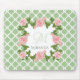 Dieses elegante, grün-weiße Vierblattmuster-Mousepad mit einem romantischen, zartrosa rosa Rosa-Blumenmonogramm, das Sie mit Ihrem Initial und Namen personalisieren können.