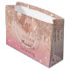 Eine Geschenktasche für eine mädchenhafte und glamouröse 21. Geburtstagsfeier (oder jedes Alter). Rosa, Rose goldener Farbverlauf mit Imitaten Glitzer Tropfen, Farbe Tropfausdruck und Ballons. Der Text: Der Name wird mit einem modernen handgeschriebenen Stilskript geschrieben. Personalisieren und fügen Sie Datum, Namen und Alter hinzu.