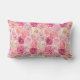 Ein hübsches rosa, weißes, rot-rosa und magentafarbenes Lumbalkissen mit Blumenmuster.