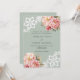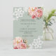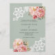 Für eine elegante und romantische Hochzeit. Ein wunderschöner grüner Hintergrund mit rosa und Rose goldenen Blumen, Rose und Spitzen. Personalisieren Sie Ihre Namen und Details und fügen Sie diese hinzu.