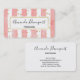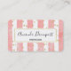 Visitenkarten mit elegantem Muster. Mit rosafarbenen senkrechten Streifen und Imitaten goldenen Konfetti-Glitzer verstreut in Rosa. Ein weißes Rechteck mit einem goldenen Imitat-Rahmen, oben platziert, mit dem personalisierten Text innen.