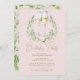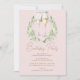 Aquarellbilder einer Gläser, die in einem Blumenkranz gerahmt sind. "Geburtstagsparty" in goldfarbenem Text auf hellrosa Hintergrund. Text ist vollständig editierbar und kann in jedem Alter geändert werden.