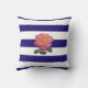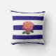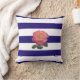 Elegante rosa Rose auf marineblau und weiß gestreiften werfen Kissen. Eine schöne Rose, um Ihren Geist zu fördern! Elegante dekorative Kissen. Schöne stilvolle Wohngestaltung.