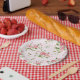 Lassen Sie Ihren Babyduschtisch mit diesen eleganten Tellern aus rosa blühendem Party glänzen. (AI-Generated Artwork)