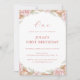 Rosa Rose Erster Geburtstag Einladung hat eine Aquarellfarbe rosa Rose. Personalisieren Sie das Design mit den Angaben zu den Geburtstagsfeiern Ihres Kindes.