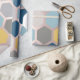 Rosa Rose Gelb Blaue Geometrie Honeycomb Hexagon Geschenkpapier