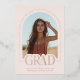 Die Ankündigung des Abschlusses mit dem rosa Foto in Rosa ist ein schlichter, moderner Sake, der mit minimalistischer Eleganz entworfen wurde. Die Vorderseite weist ein bogenförmiges Foto mit einem dünnen Rand auf, und das Wort "grad" überlagert das Foto teilweise - beide in Original-Goldfolie Rose gedruckt für diese Touch von Luxus. Die Erholung des Textes ist in Terrakotta / gebrannt orange. Personalisieren Sie die Vorlage, indem Sie Abschluss Jahr, Name und Schule hinzufügen, um Ihre Ankündigung mit Leichtigkeit zu erstellen. Laden Sie auf der Rückseite ein Foto in voller Größe hoch und fügen Sie eine Signaturzeile hinzu. © Kimbellished, LLC