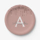 Rosa Rose Gold Glitzer Monogram Birthday Pappteller