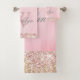 Rosa Rose Gold Glitzer Tropfen Mit Monogramm Badhandtuch Set